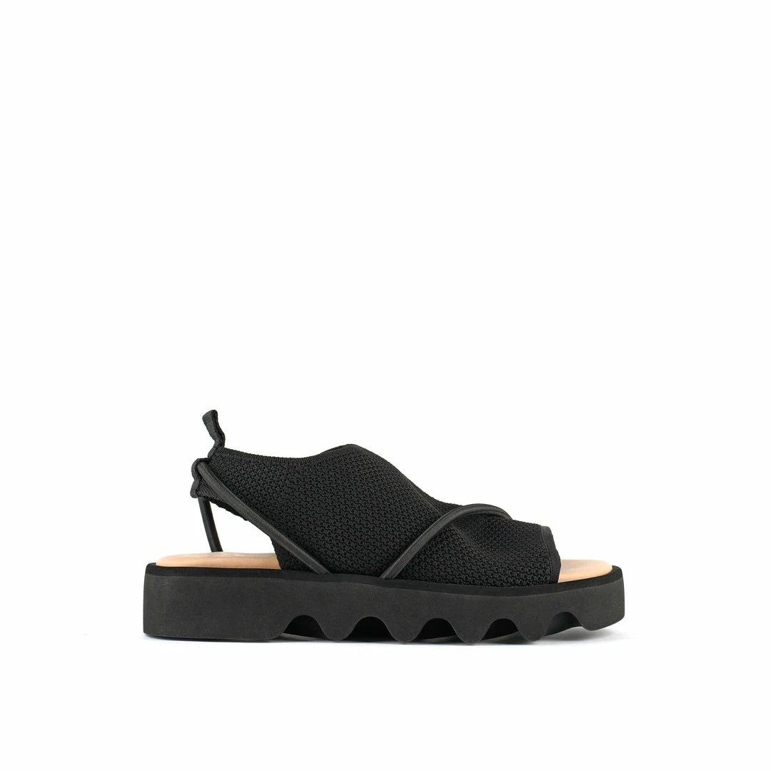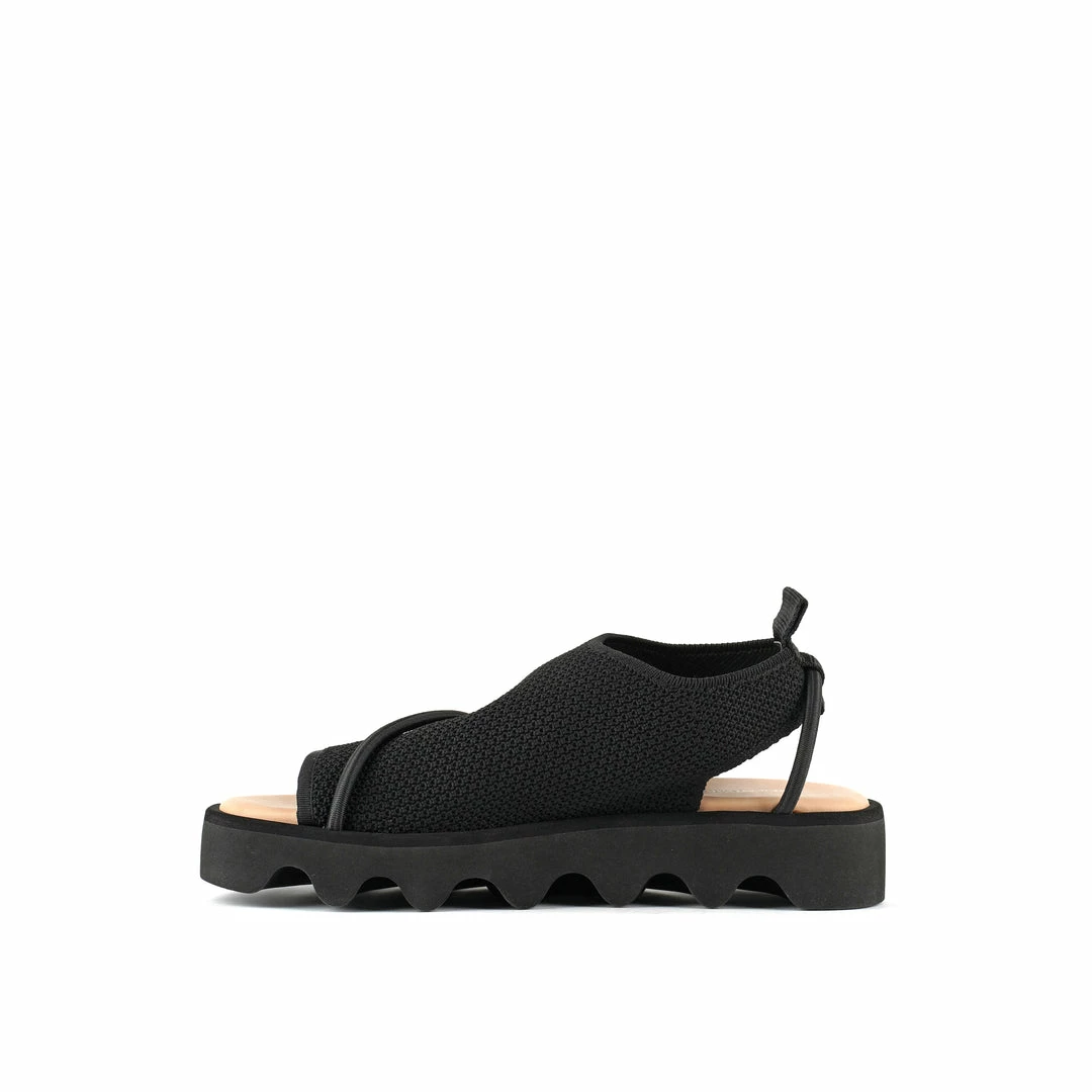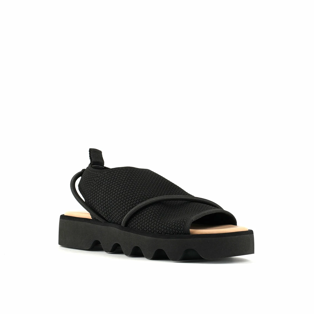 The Bind is a pull-on sandal grounded by a chunky, undulating sole. Tonal elastic bands encompass the soft knit upper while the heel tab offers easy on and off wear. Includes additional ankle straps that can be looped through the heel tab and wrapped around the ankle for the best fit.