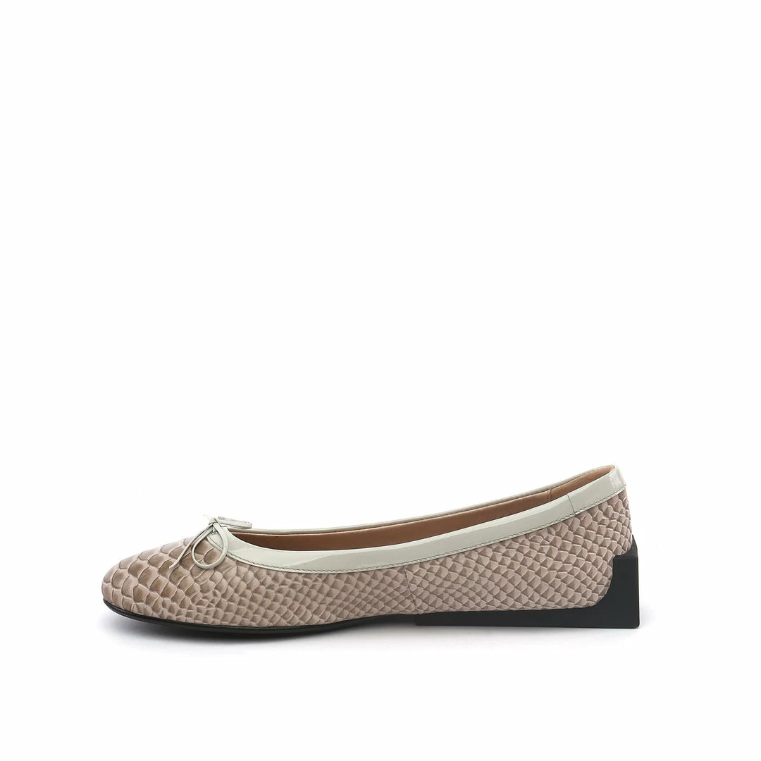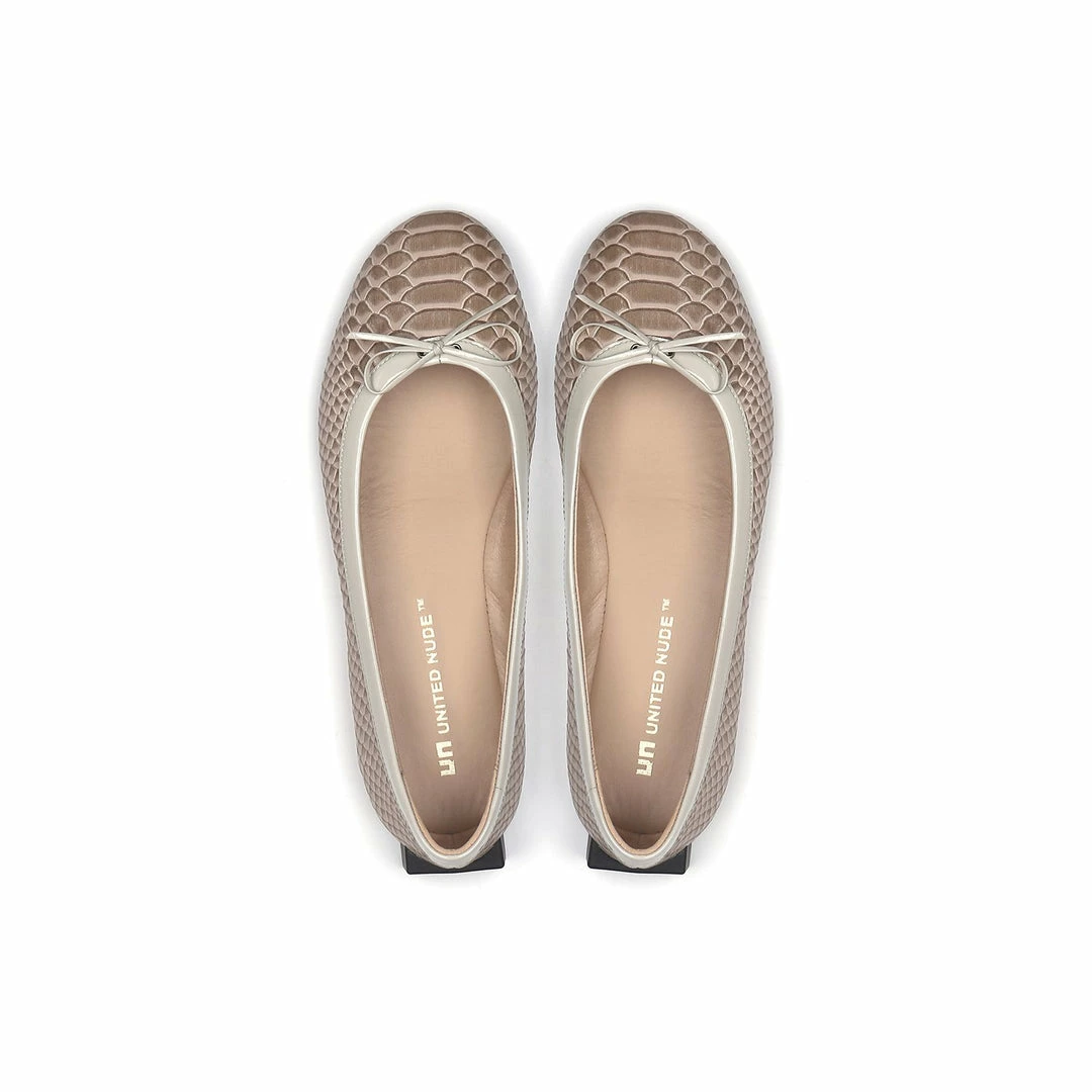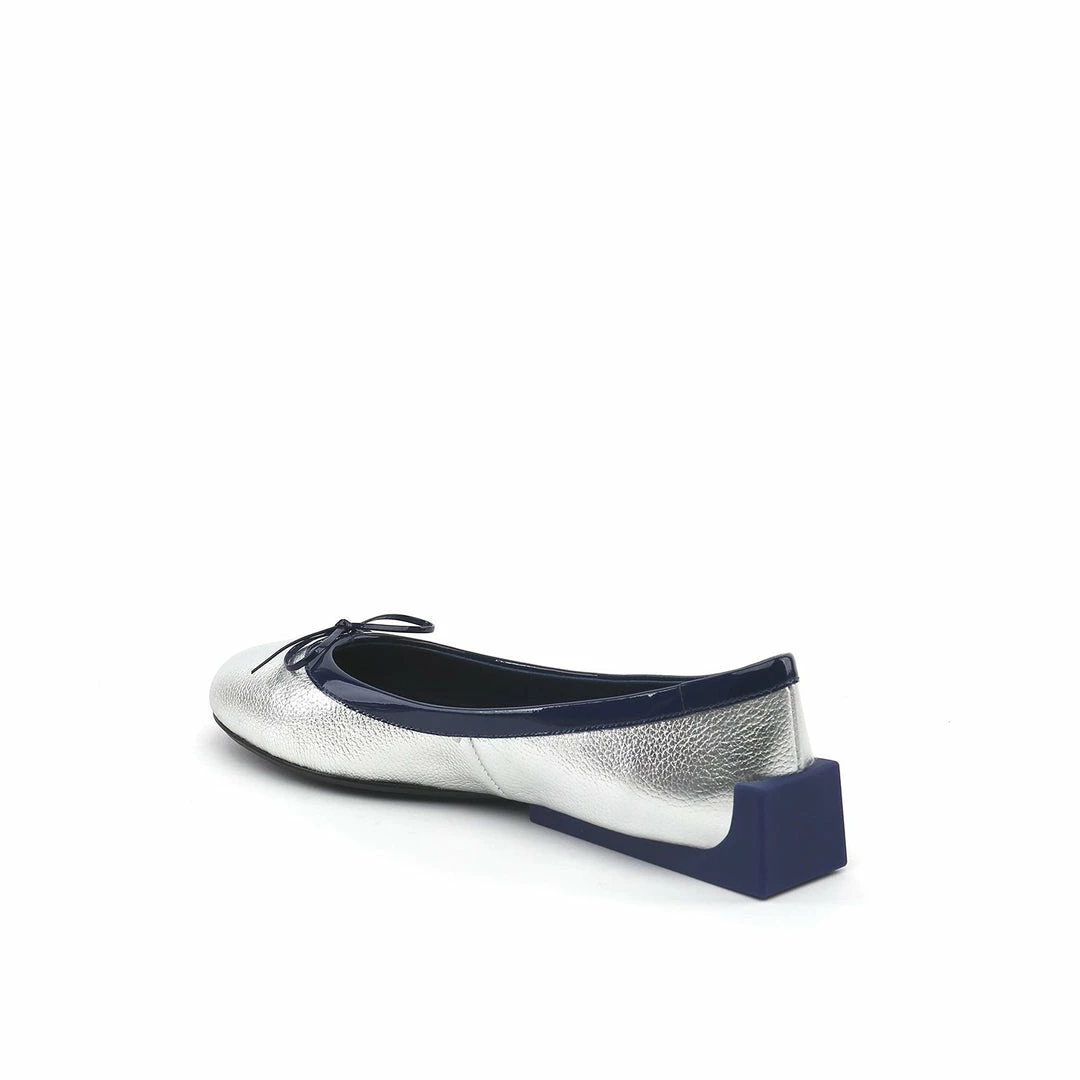 The Block Ballet is a classic ballet flat punctuated by a geometric block heel.