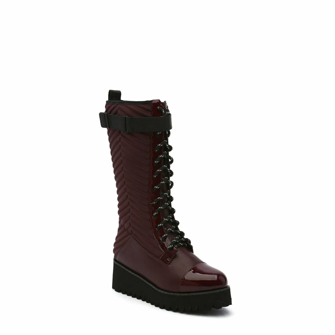 The Combat Tall Boot is a knee high combat boot with a quilted neoprene shaft and mixed textile upper that sits on a cleated platform sole. Ultra plush lining crafted from eco-fur ensures a cozy and comfy fit for the coldest of days.