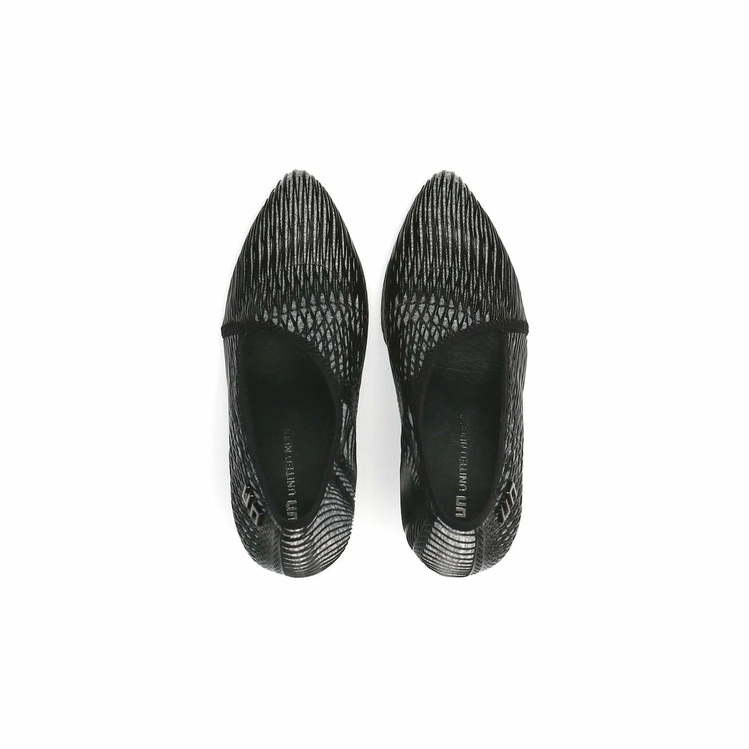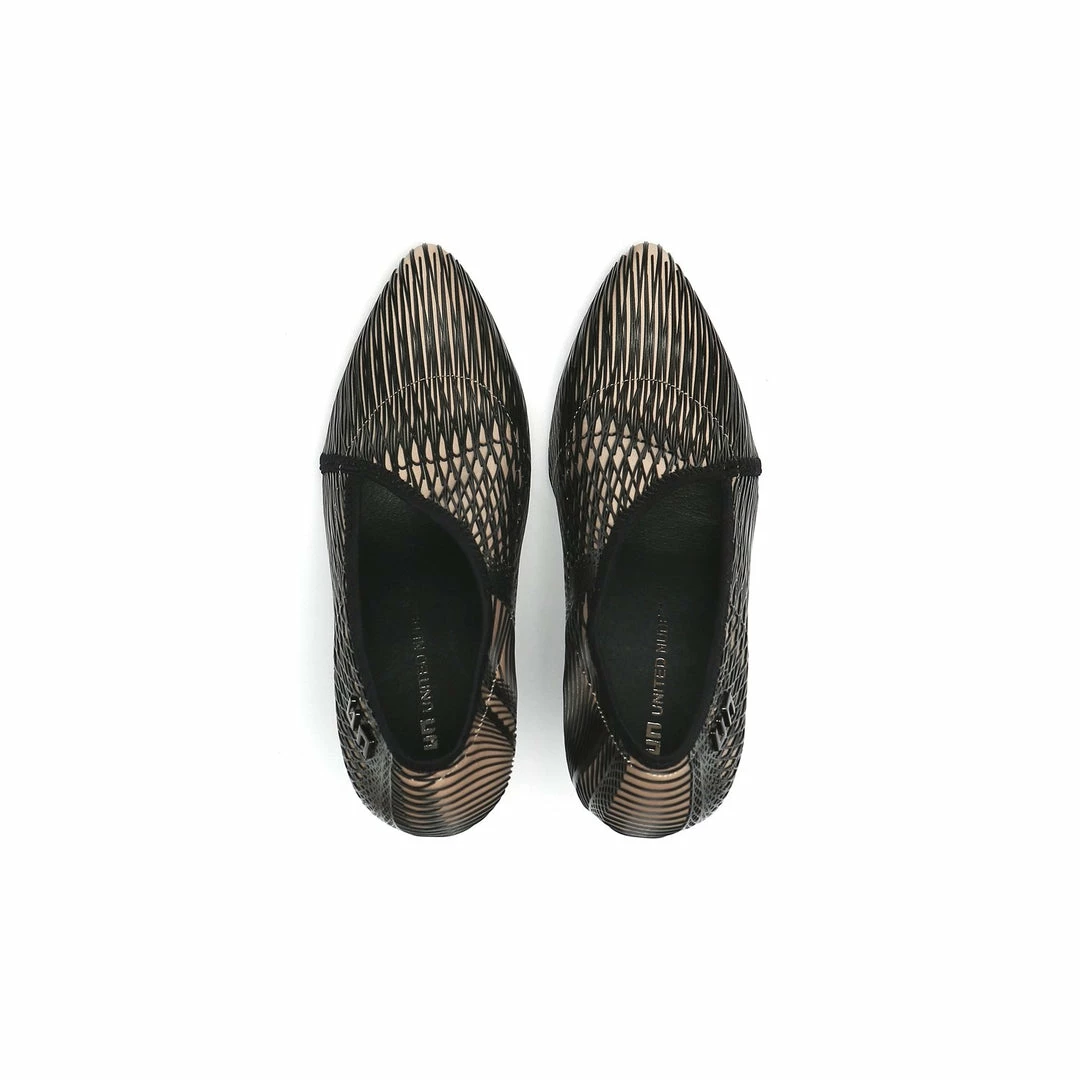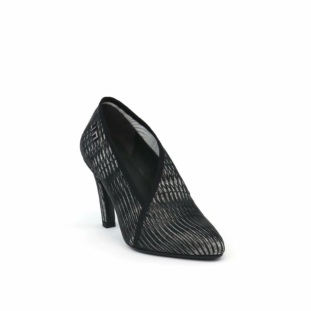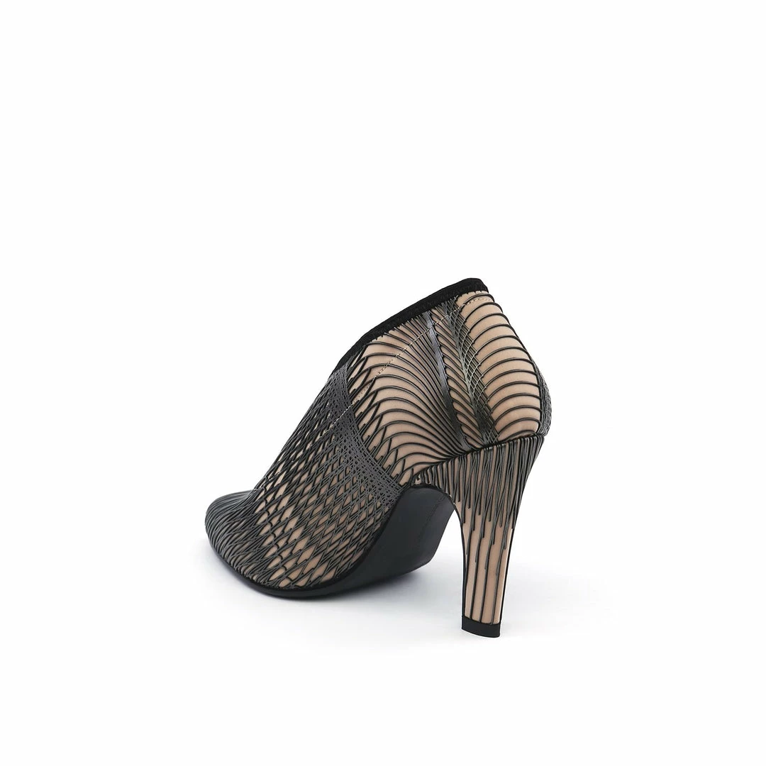 The Fold Lite Hi is a high heel ankle bootie with a soft almond toe and an asymmetrical top line.