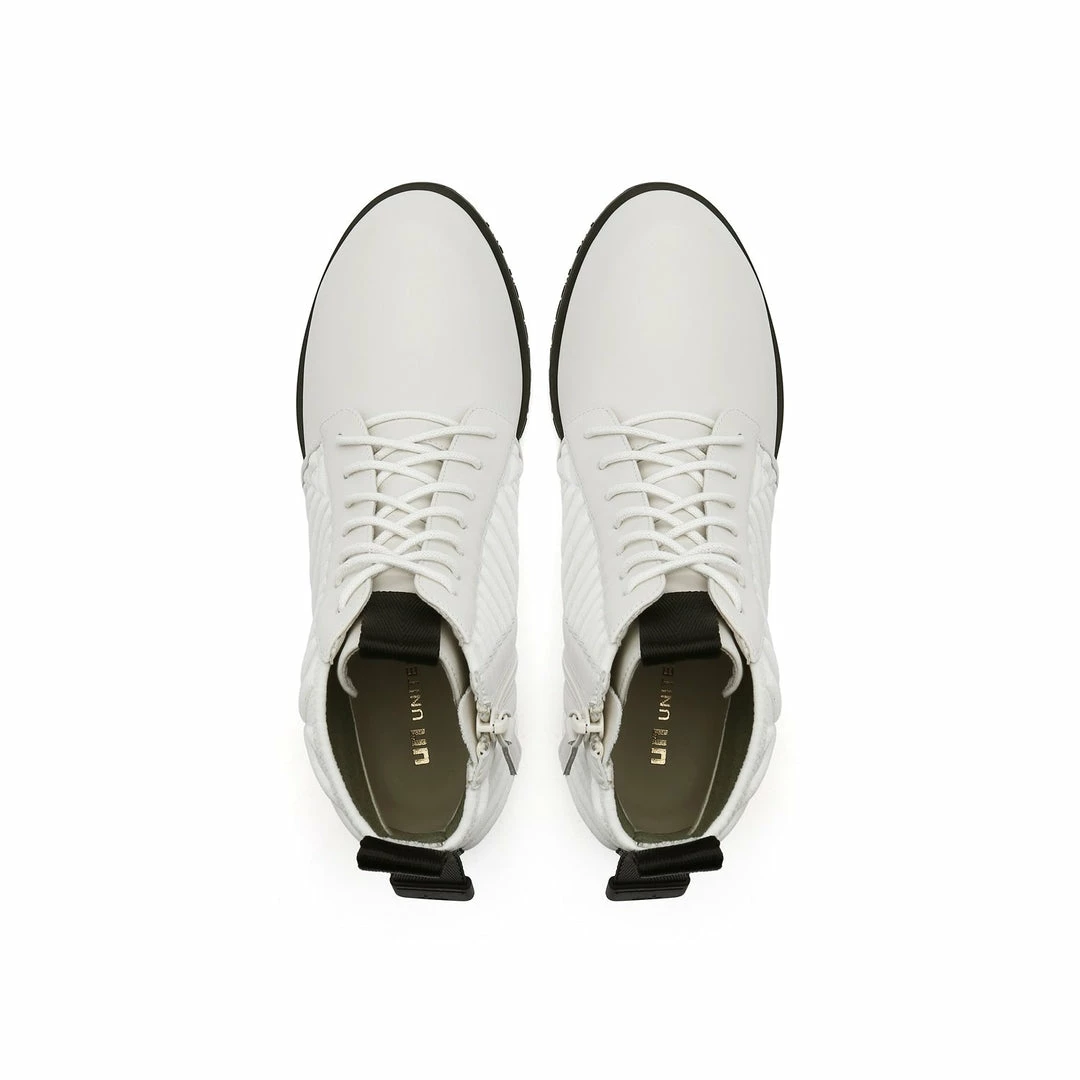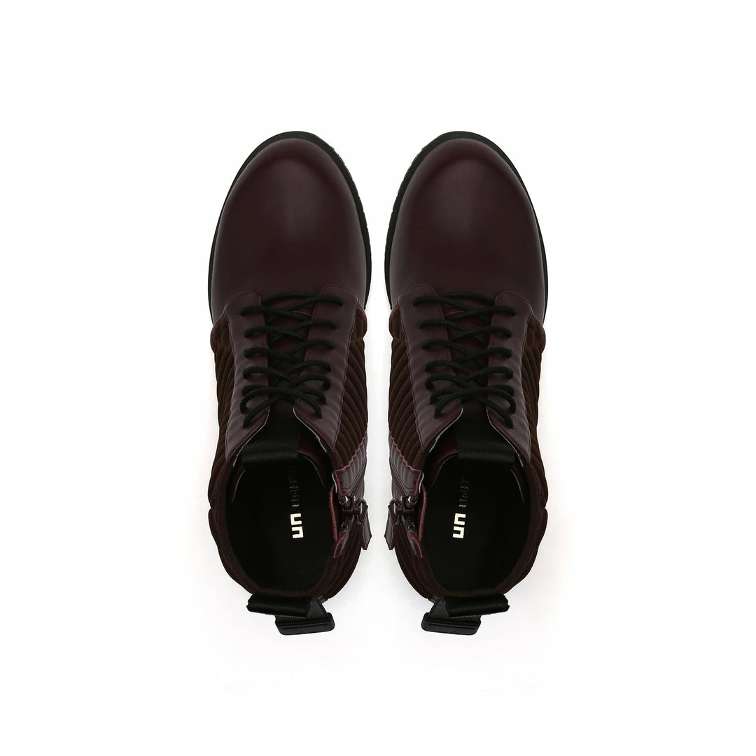 The LEV Lace Bootie is a mid height lace-up bootie with a padded quilted neoprene shaft. The geometric block heel and sharp toothy sole allow for stability and comfort.