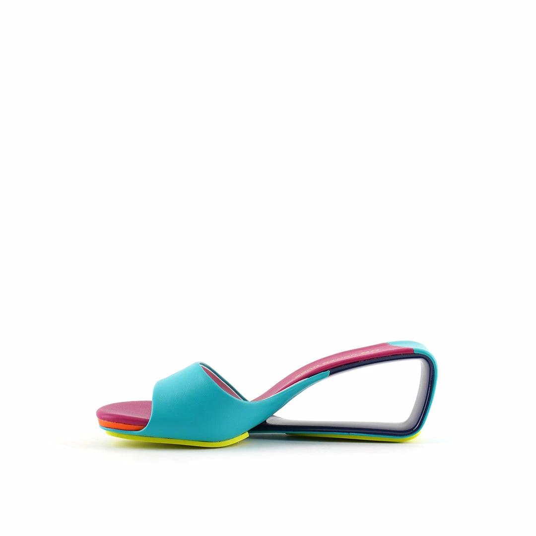 The Mobius Mid is a light-weight, open-wedge heel made from fiber-reinforced nylon. A single band forms the sole, heel, footbed and upper of the shoe. The Mobius is inspired by the phenomenon of the Mobius strip, a single-sided surface with no boundaries.