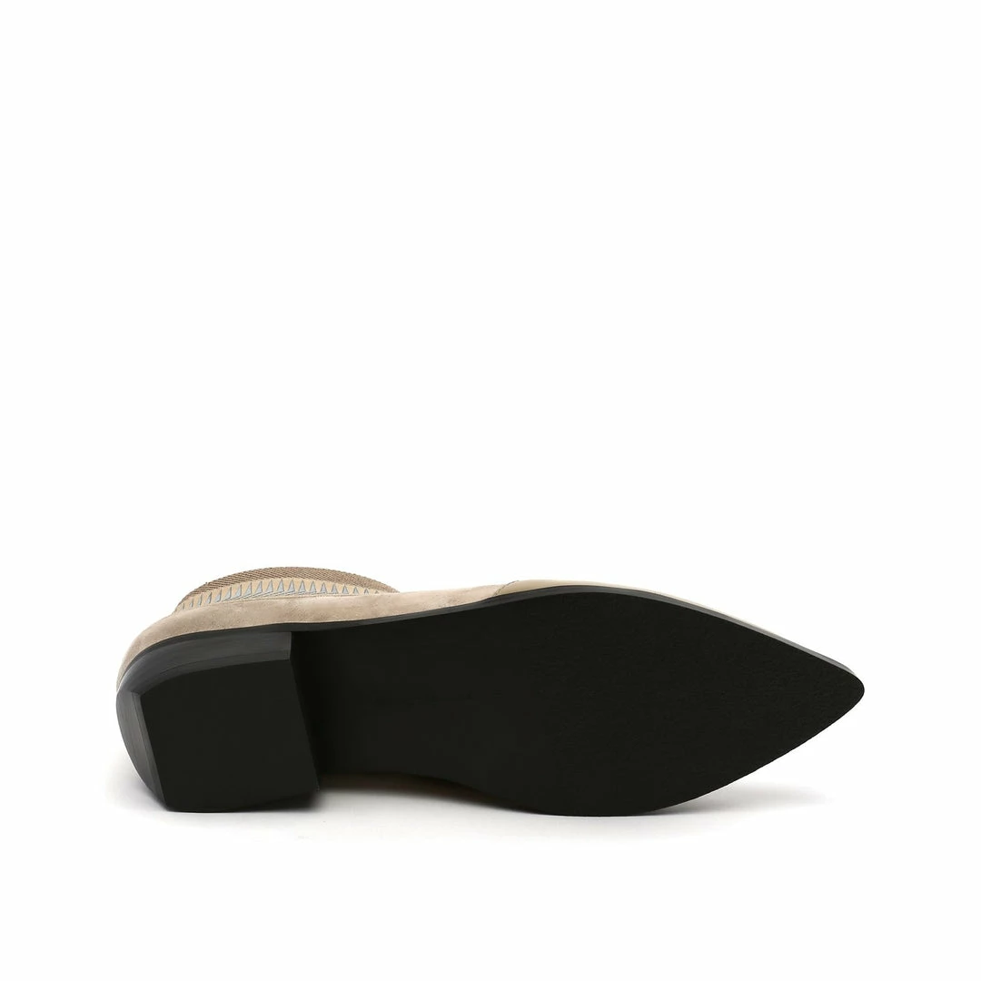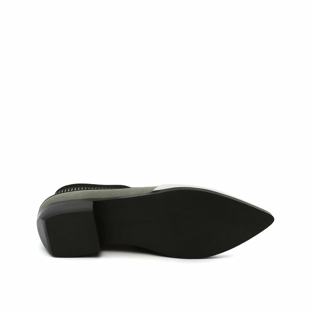 The Pop Bootie Lo is a flat pointy-toe bootie with a graphic statement.