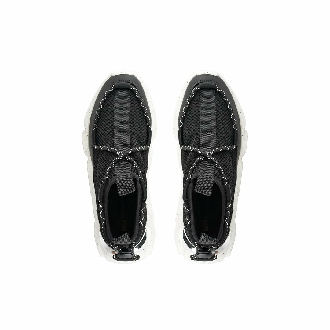 The Space Kick X is a slip on sneaker with a simple sock upper. Rope detailing weaves from the rubberized to cap to the heel counter, where it can be adjusted for an individualized fit.