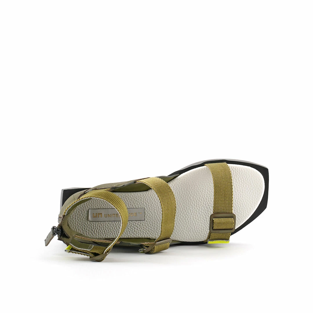 The Su Lo is a flatform sandal with a blocky angular base, adjustable nylon straps, a leather upper and a zipper at the heel. The EPR outsole and footbed adds a sporty bounce to your walk.