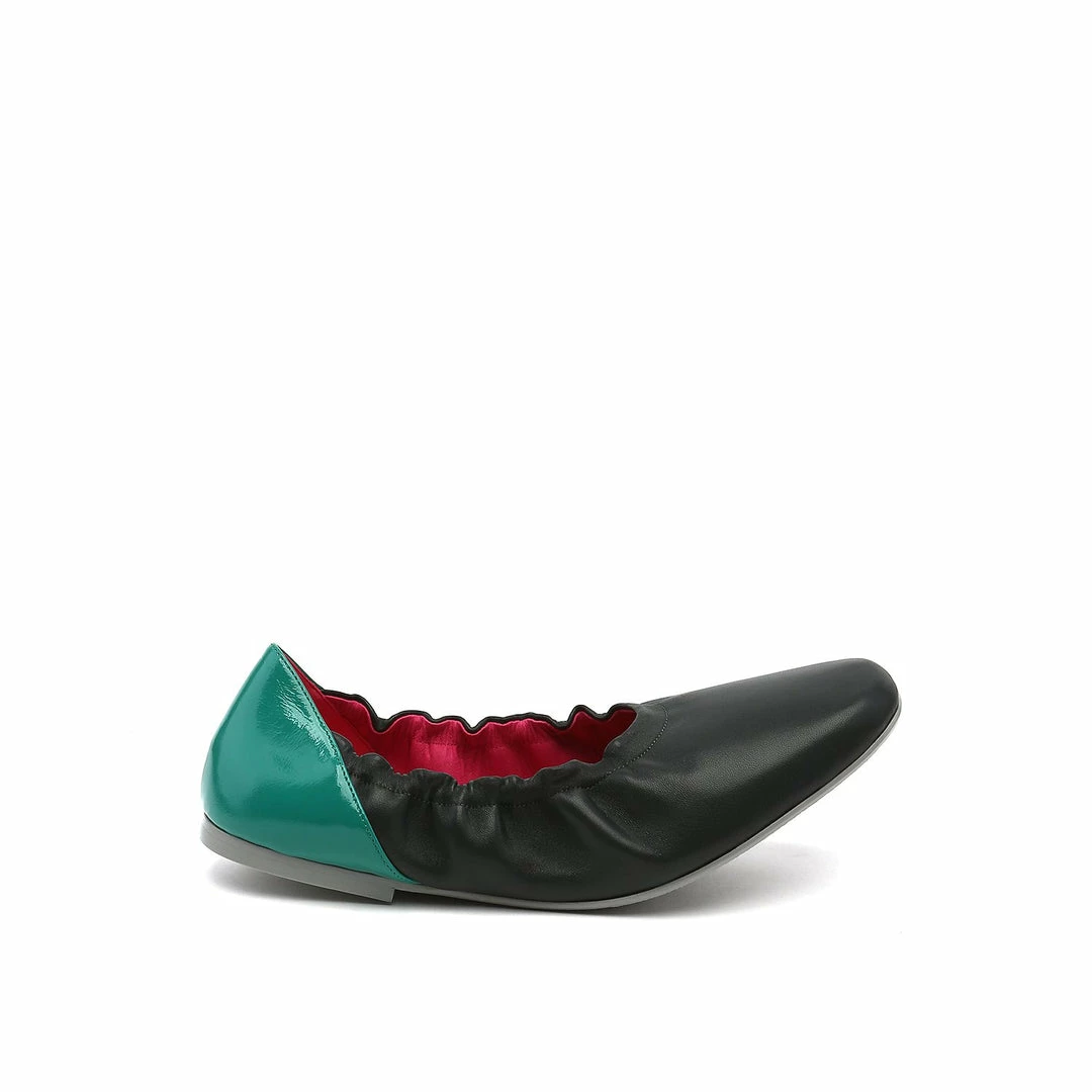 The Delta Ballet is a squared toe, bicolor flat constructed with buttery-soft leather.
