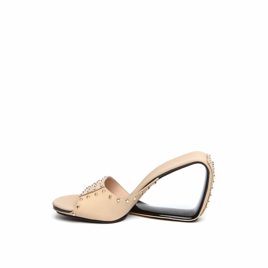 The Rivet Mobius Hi is a lightweight, open-wedge high heel made from fiber-reinforced nylon. A single band forms the sole, heel, footbed and upper of the shoe.